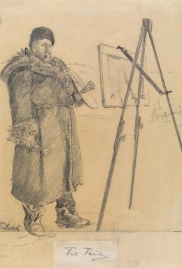 Her har det ikke vært kjørt opp løype, men en skiløper på treski, kanskje smurt med stearinlys, har vært her. Det har Bergstrøm også. Vi har sett bilder med vintermotiv før, men det har vært barns lek med spark etc. i bygatene. Bergstrøm og hans malervenner var mye på farten i naturen på jakt etter motiver, men ikke om vinteren. Maleriet henger i dag på veggen hos Eva på Sørlandet. (06.09.25)