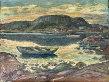 På Fagerstrand på Nesodden har Ø.Christensen sporet opp to malerier. Et stilleben som vises her. Maleriet er antagelig fra omkring 1905-10. ( 24 x 36,5 cm.) Nedenfor det andre bildet fra Fagerstrand.